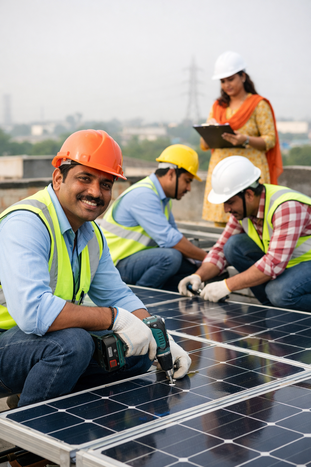 Our company's mission is to drive India's solar adoption with a clear roadmap to support the government's renewable energy goals. We strive to make clean, reliable, and affordable solar energy accessible to all.